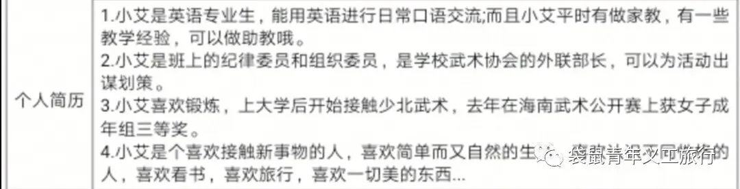 3.本人特长:别觉得自己啥都不会,很多人都一样的,自信点,你是最棒哒!写一些很容易学的,比如:摄影,做饭,自媒体(这都是很受欢迎的,也不会有多高的要求,你可以去当义工之前上b站上学学),