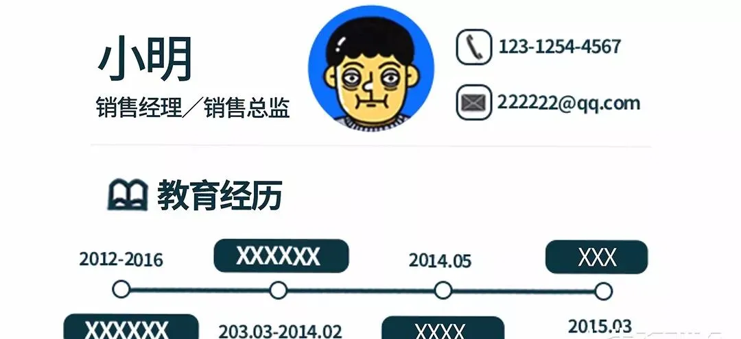 可是光好看没用,太多的设计元素挤占了文字的位置,很可能导致HR在几秒内抓不住重点,不被PASS才怪。