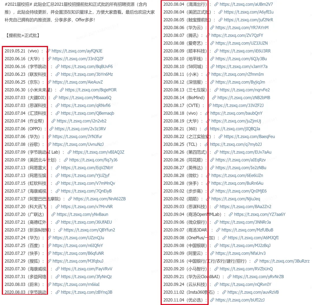 去年2021届校招的海量内推截图如下,今年2022届校招内推会继续增加!敬请期待!