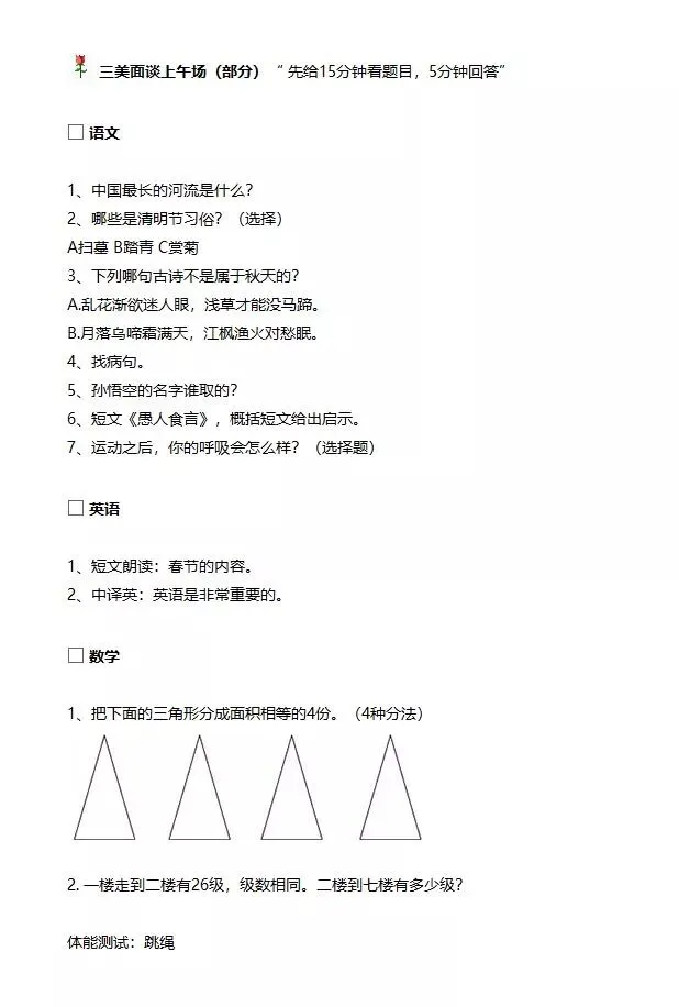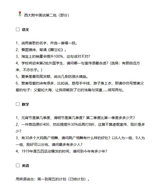 6月29日,南宁市三美学校、广西大学附属中学进行“小升初”面试 。一起来看看面试题目吧~
