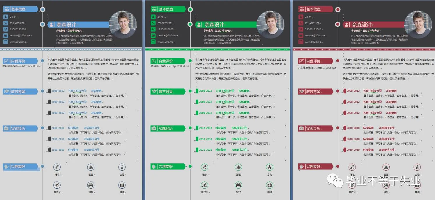 2.将简历分为单页,双页,三页简历,满足大部分同学的需求