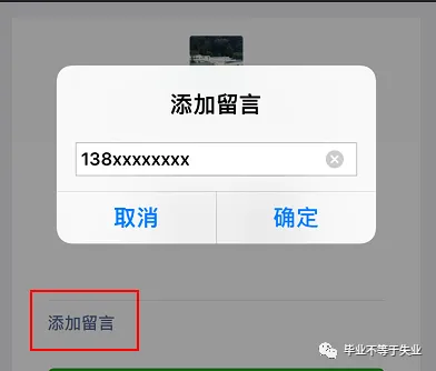 记得在“ 添加留言”写上“ 电话号码 ”,如图