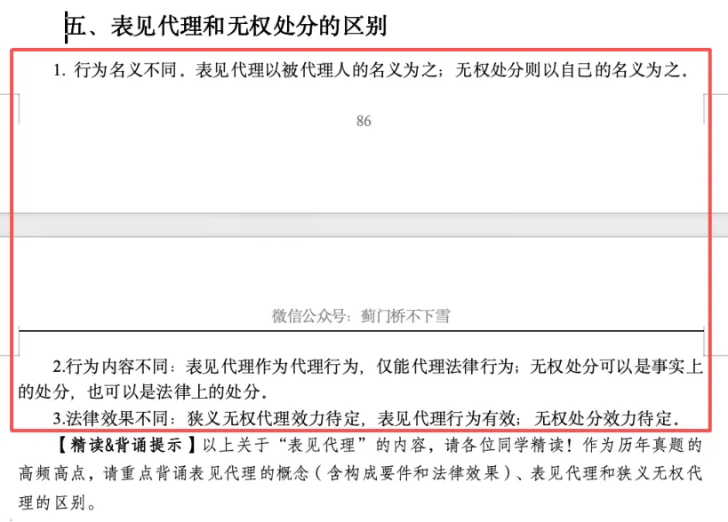 (3)法律效果不同:狭义无权代理效力待定,表见代理行为有效;无权处分效力待定。