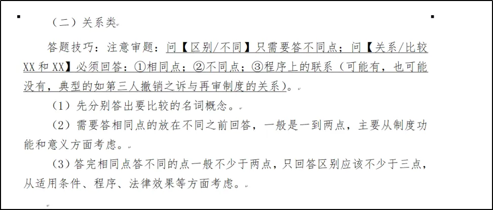 ② 押题卷答题方法中明确提示。(民事诉讼法从精讲课,一直到冲刺课第一轮至第五轮,反复强调【关系类】题目答题方法。关系类题目三个方面,任何题目都不可能漏点。)