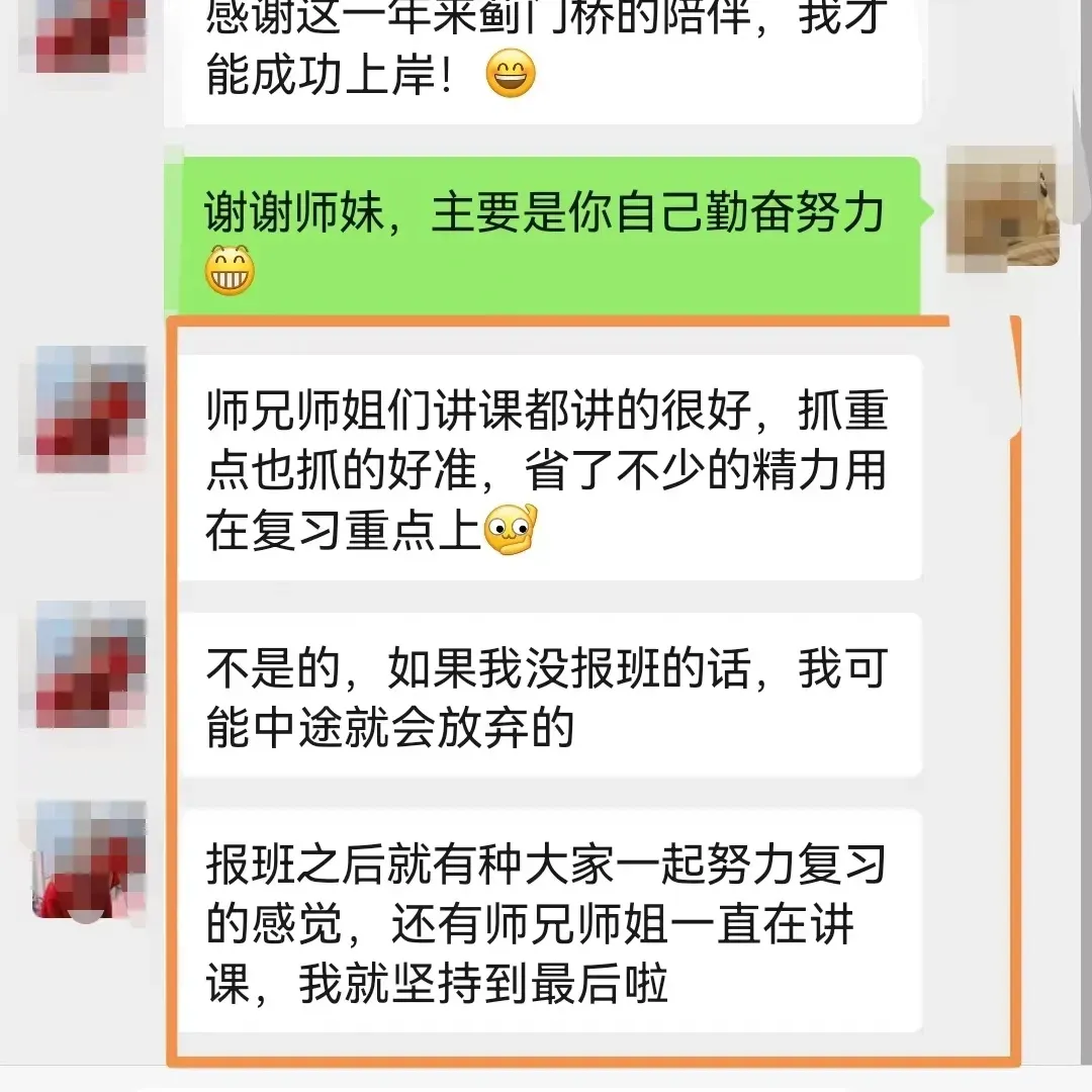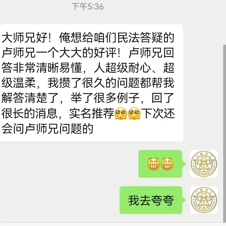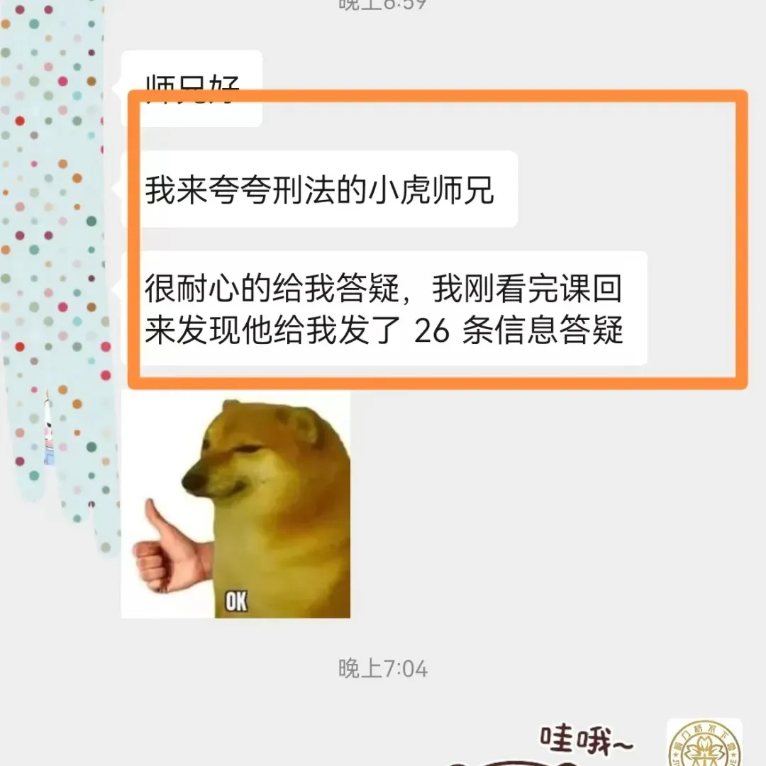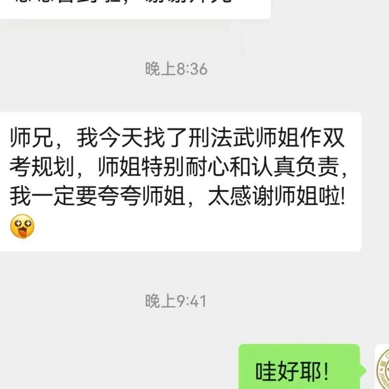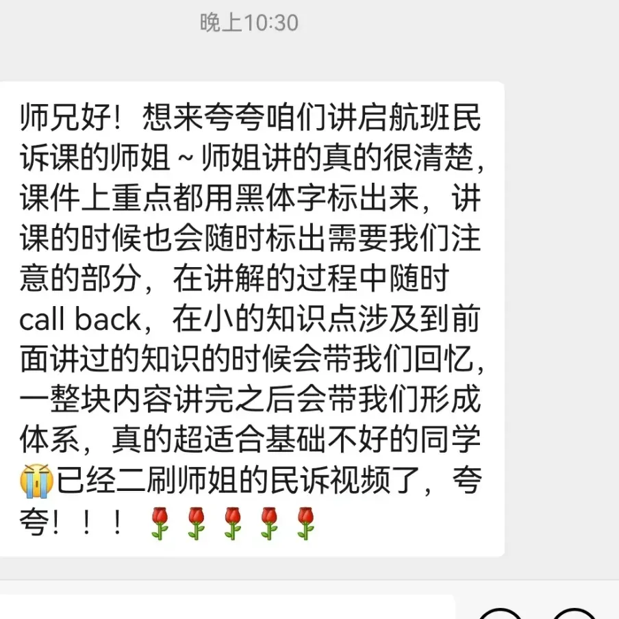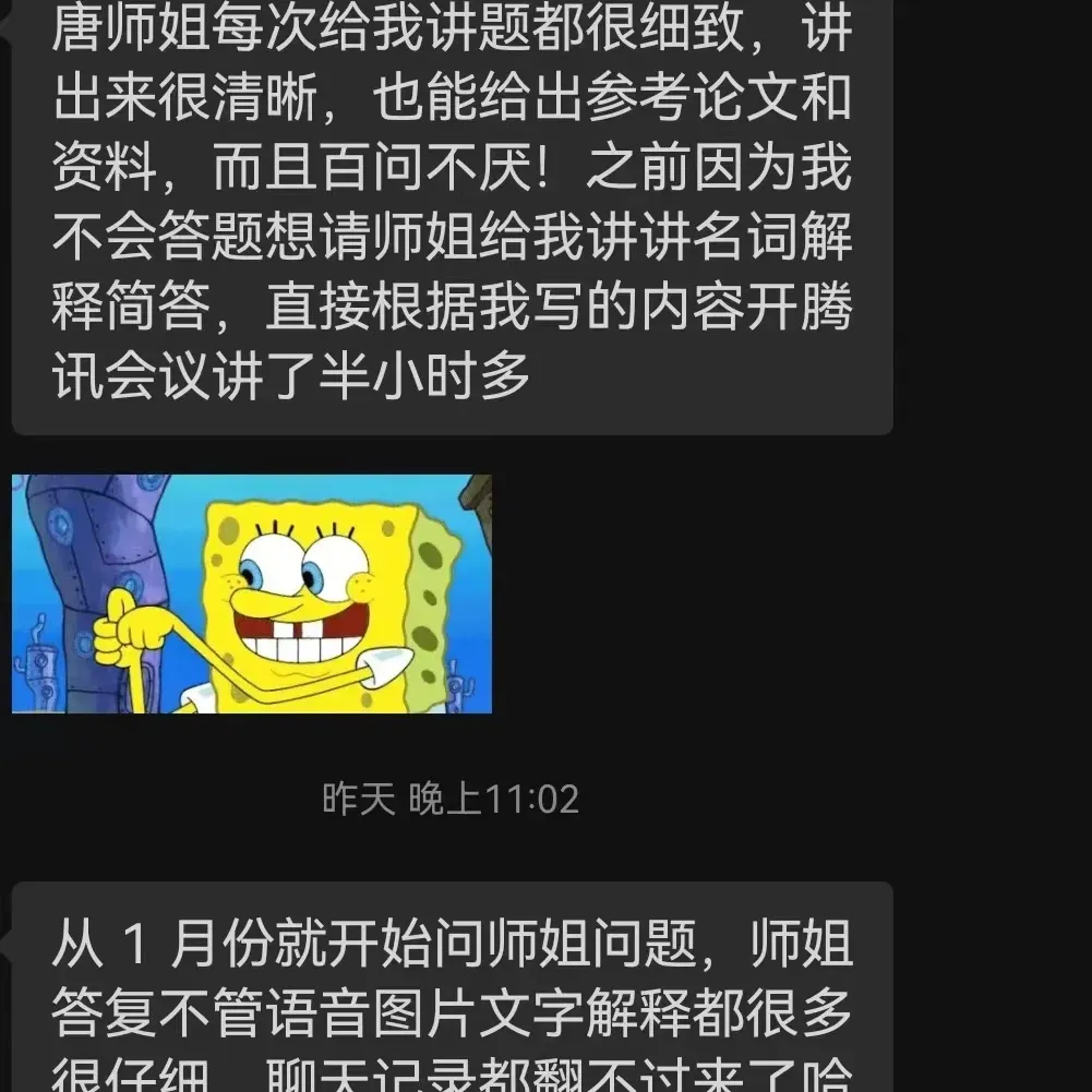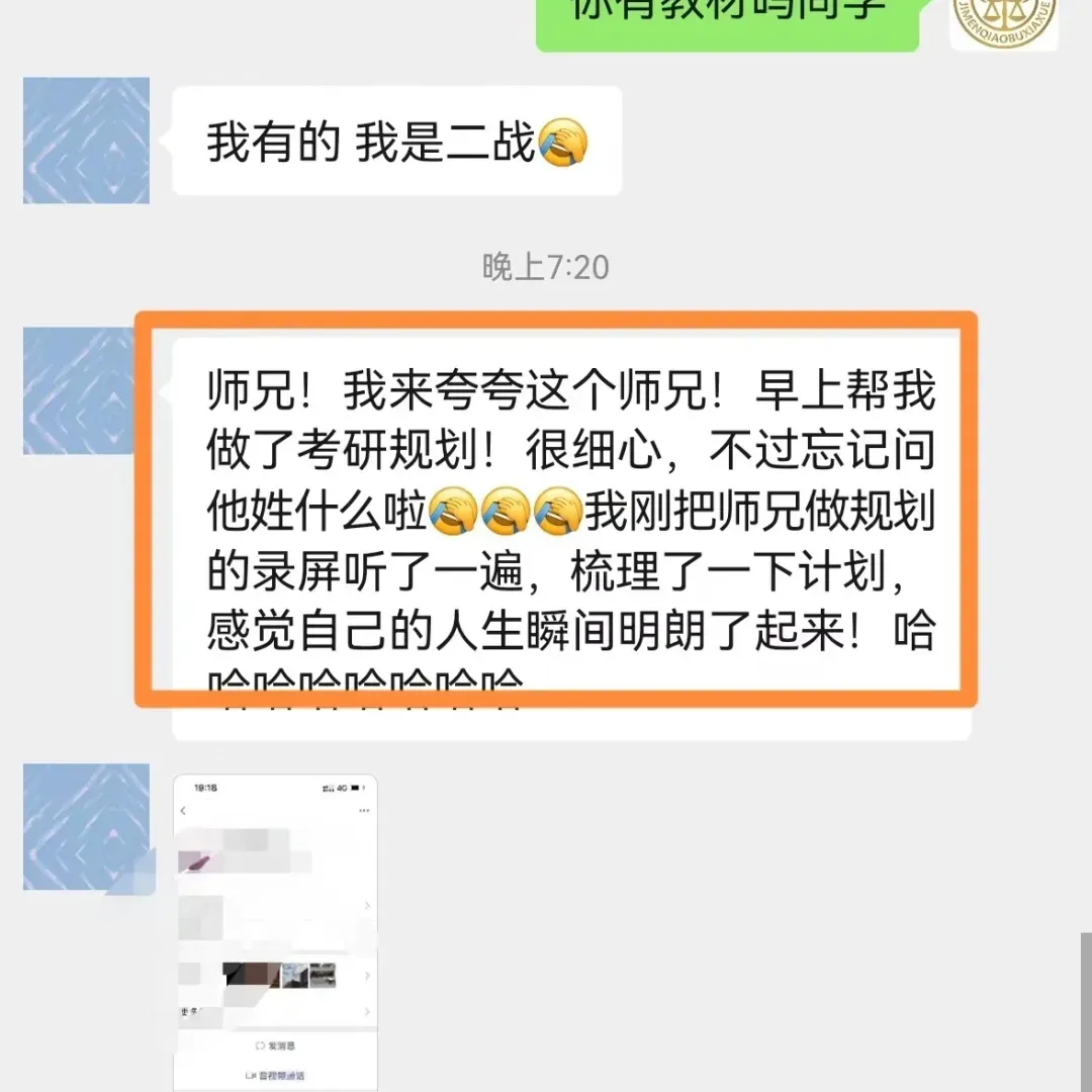 4、师姐是蓟门桥金牌班主任,获得22届学员们匿名满分好评,无一差评!长期担任蓟门桥的答疑、教学老师,擅长刑法,民法,民诉答疑,答疑耐心细致专业(实不相瞒,曾被同学夸最喜欢问我问题,因为回答非常细致),参与编写蓟门桥名词解释手册(为此把教材细读了好几遍),可以为你提供专业、学习、生活方面的问题解答和帮助