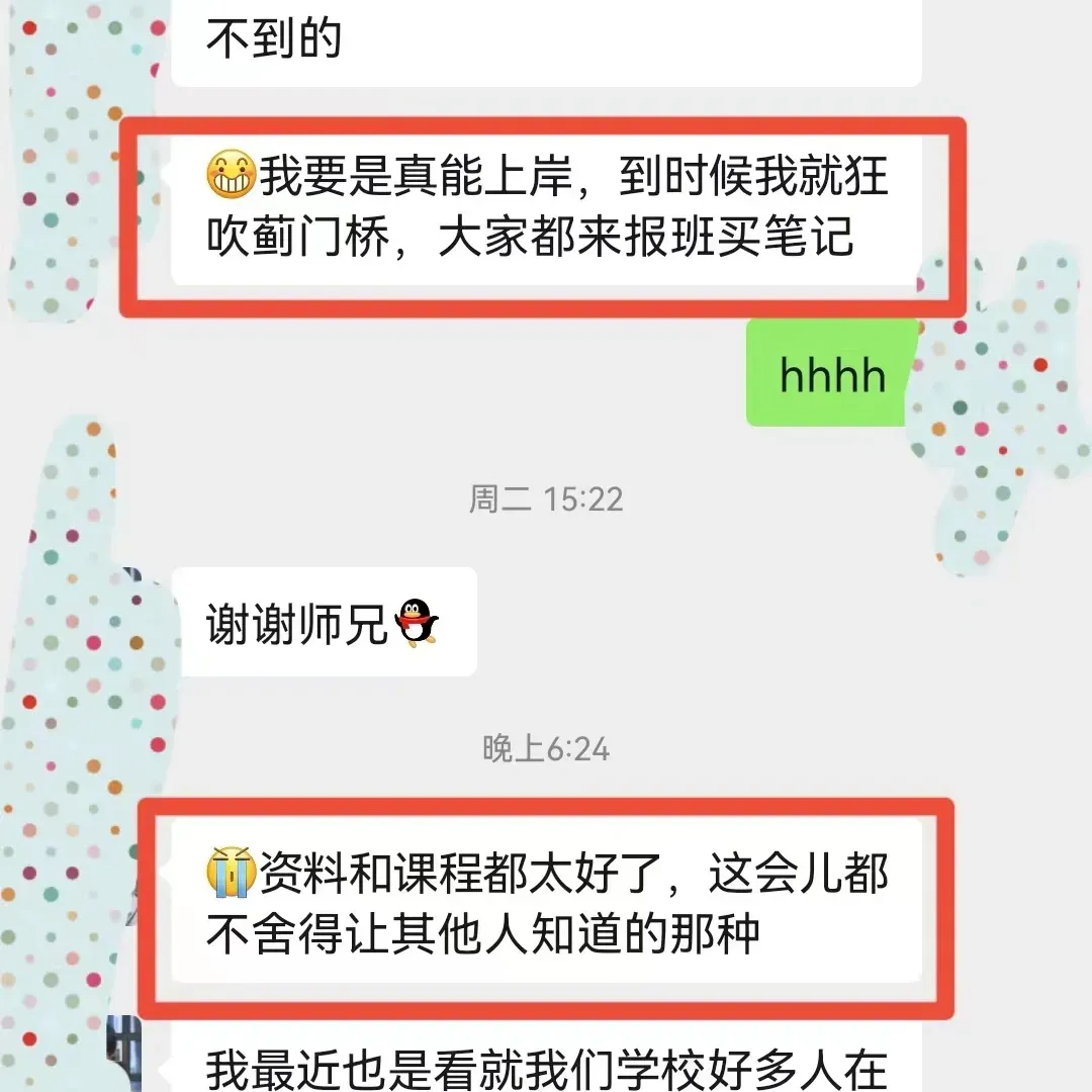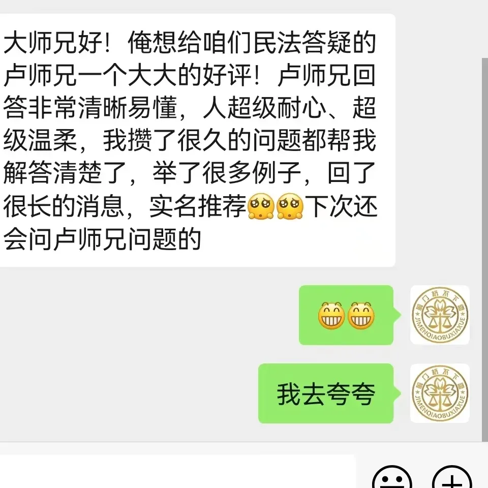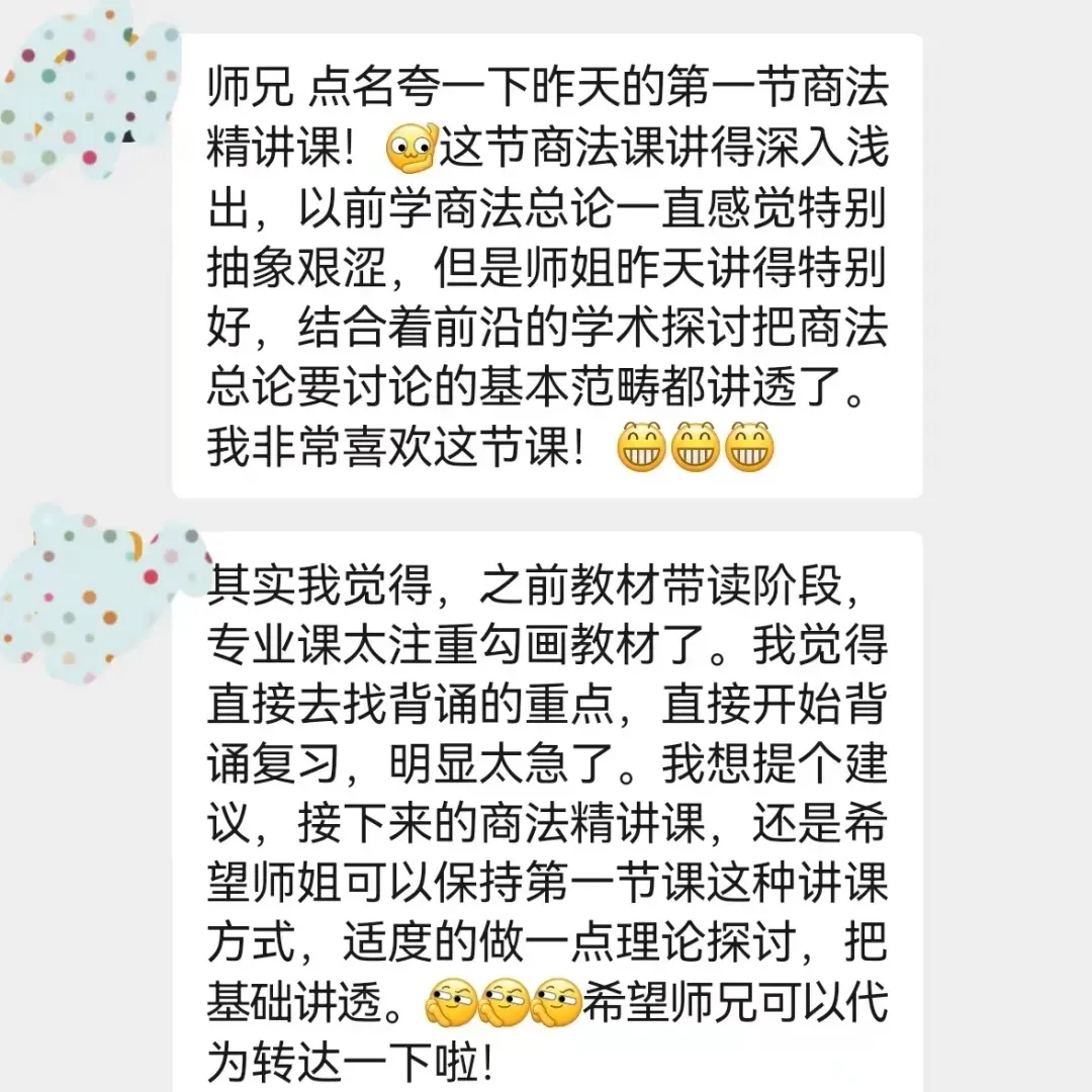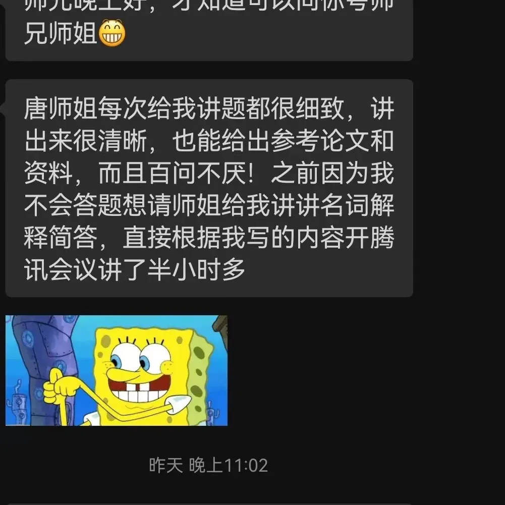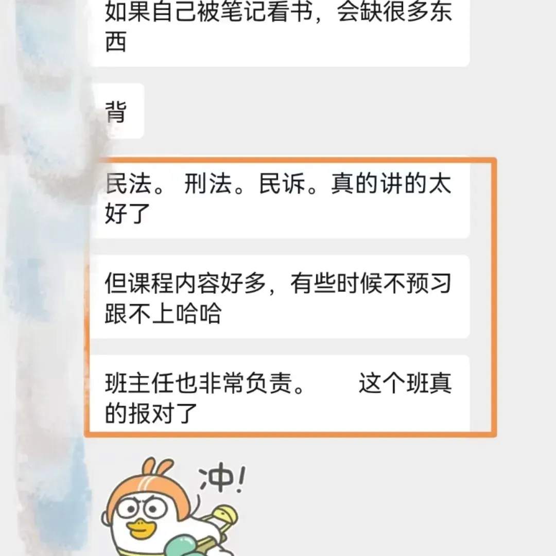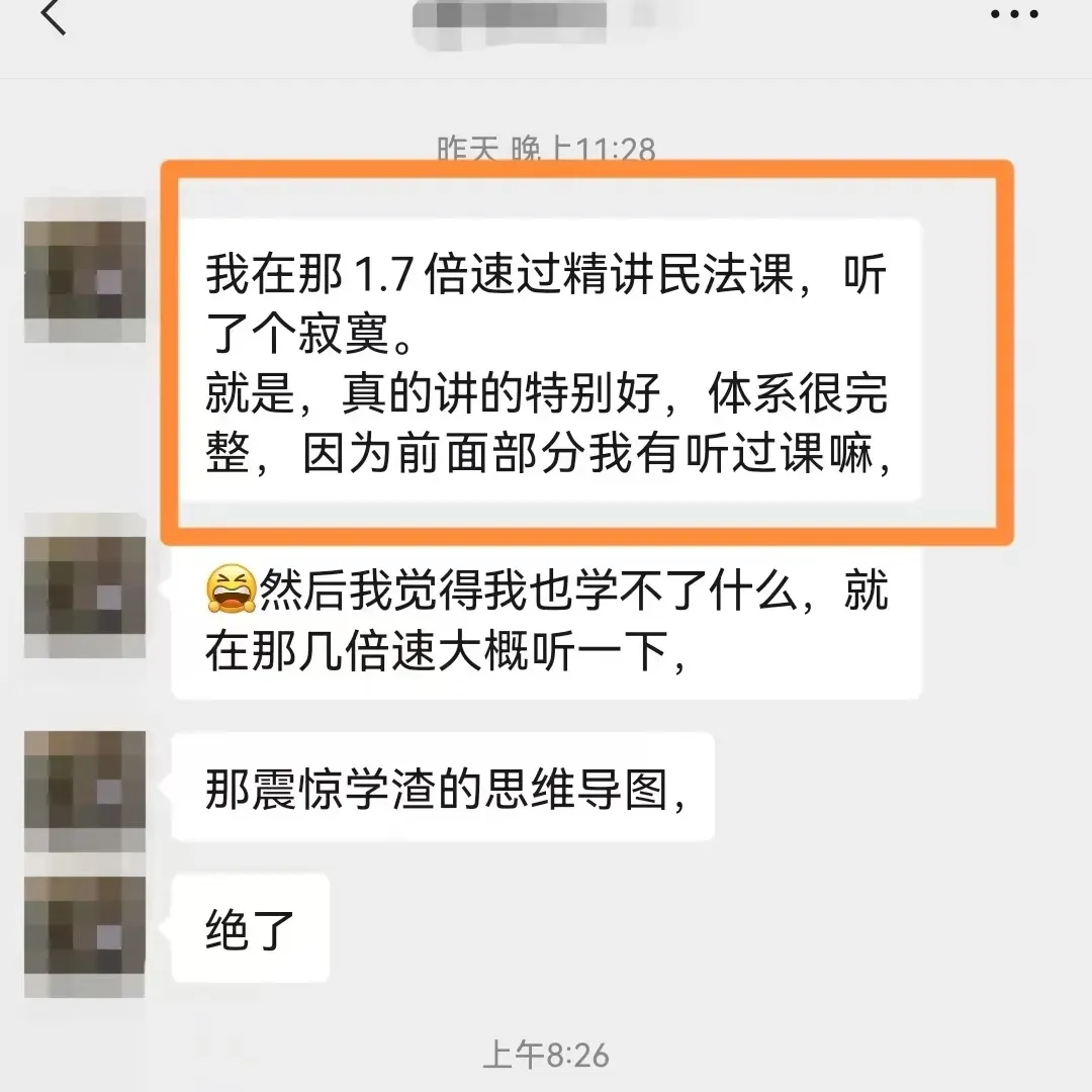 4、师姐是蓟门桥金牌班主任,获得22届学员们匿名满分好评,无一差评!长期担任蓟门桥的答疑、教学老师,擅长刑法,民法,民诉答疑,答疑耐心细致专业(实不相瞒,曾被同学夸最喜欢问我问题,因为回答非常细致),参与编写蓟门桥名词解释手册(为此把教材细读了好几遍),可以为你提供专业、学习、生活方面的问题解答和帮助