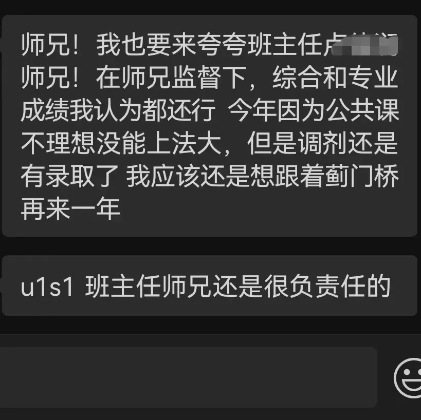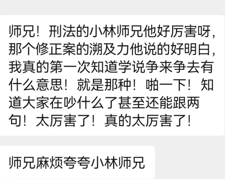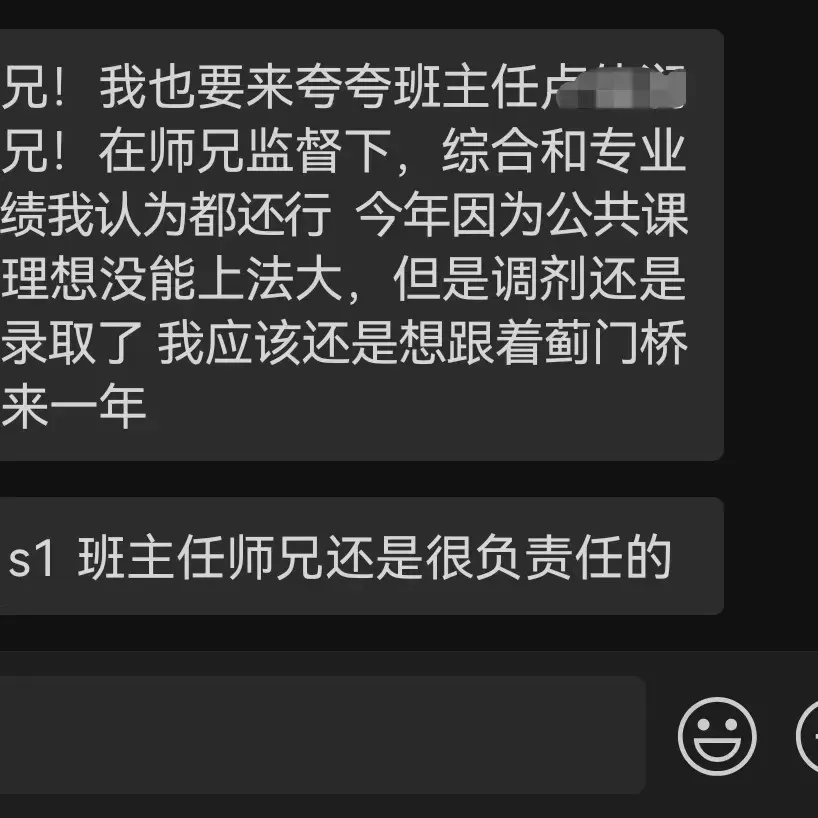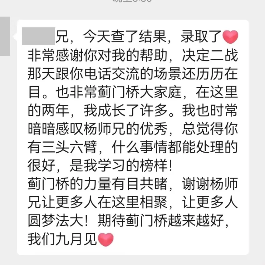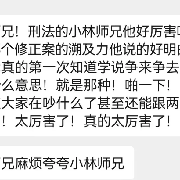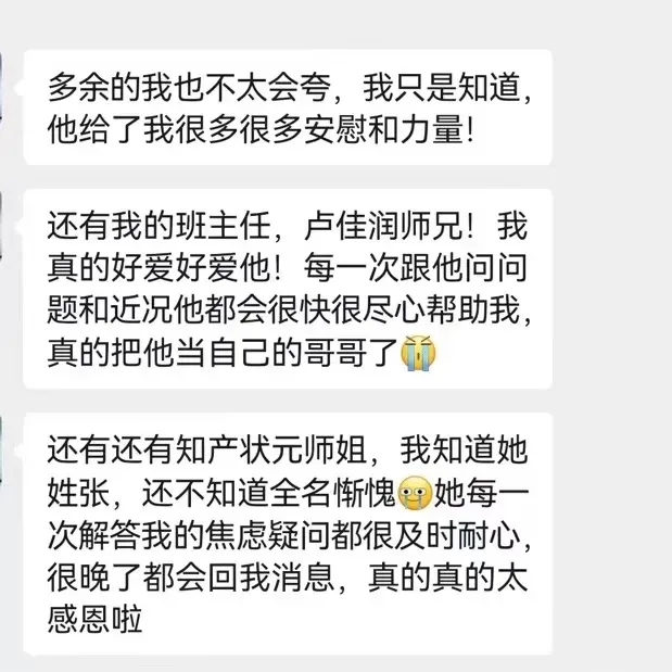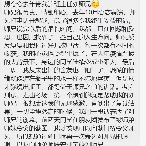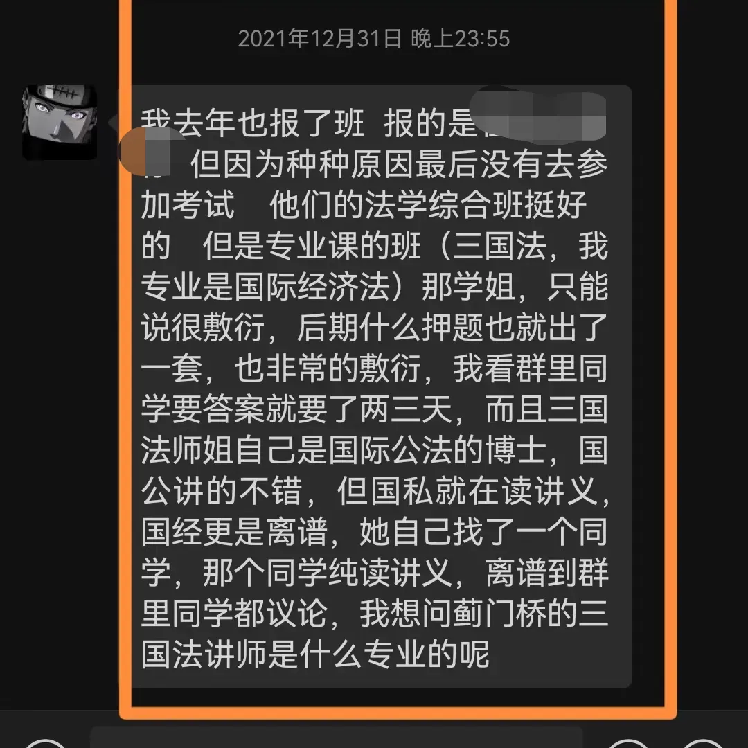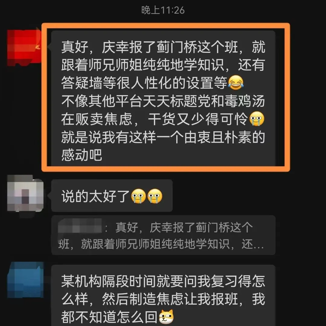 4、师姐是蓟门桥金牌班主任,获得22届学员们匿名满分好评,无一差评!长期担任蓟门桥的答疑、教学老师,擅长刑法,民法,民诉答疑,答疑耐心细致专业(实不相瞒,曾被同学夸最喜欢问我问题,因为回答非常细致),参与编写蓟门桥名词解释手册(为此把教材细读了好几遍),可以为你提供专业、学习、生活方面的问题解答和帮助