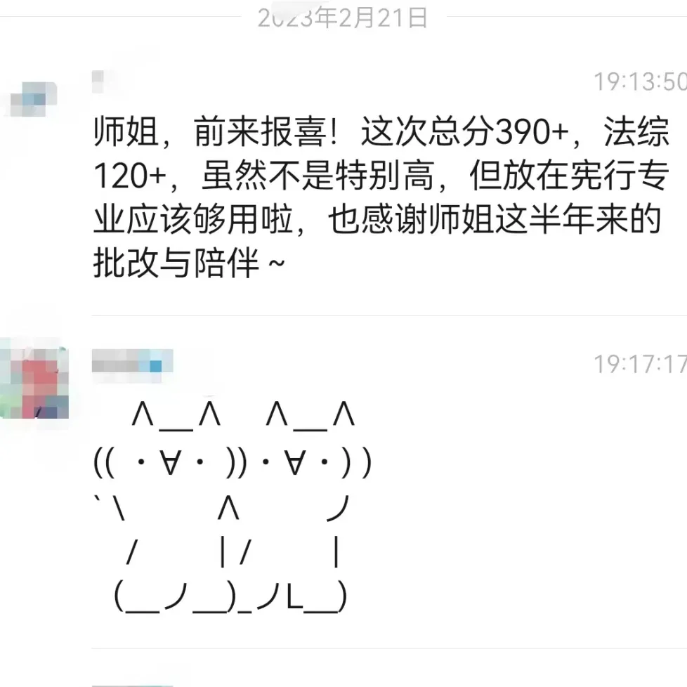 心愿师姐,法大19级本科生,23级刑法学研究生。2023年一年双考上岸法大,初试总分407,排名第八(法综127分,专业课126分,英语80分,政治74分)。
