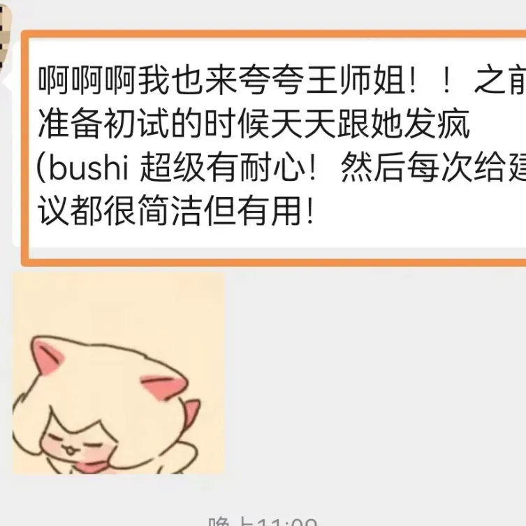 总之,师姐是一个非常耐心、温和、备考经历丰富的师姐,无论你的备考之路与别人有何不同,相信师姐都能为你指点迷津,希望能为你在日常备考中排忧解难,知无不言,言无不尽!