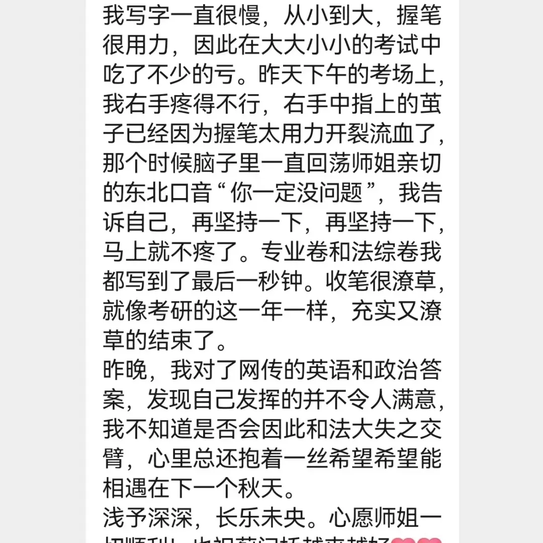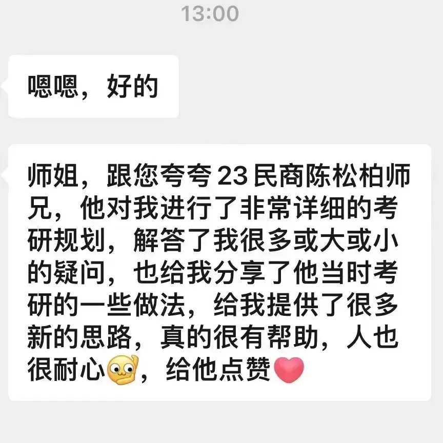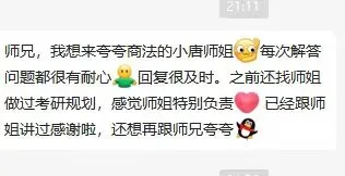 2、师姐擅长应试,总结了独特的背诵技巧与法大备考经验,可与你分享