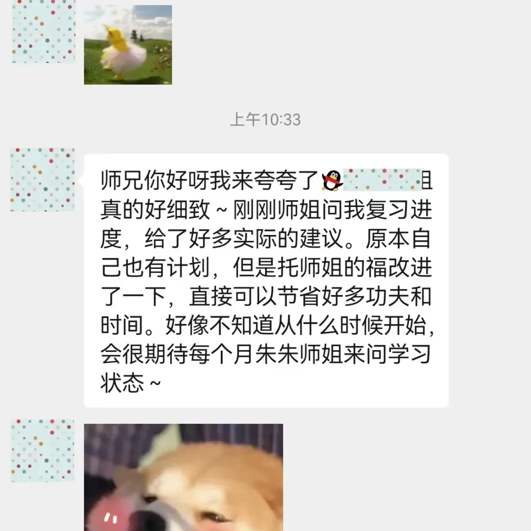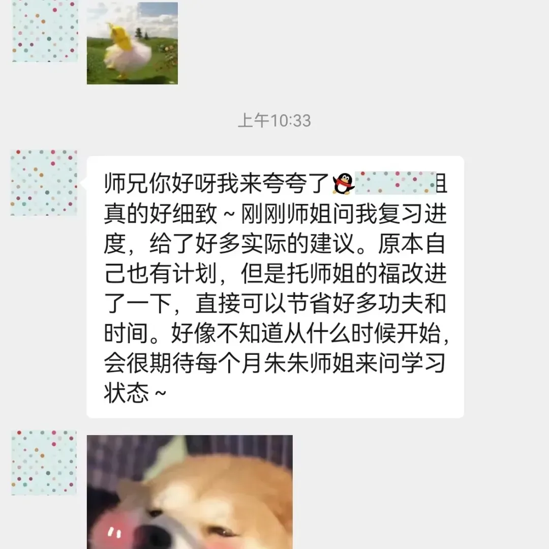 师姐学习成绩优异、备考经验丰富,而且乐于与学生交流,认真负责有耐心,更多师姐宝藏经历,等你挖掘!