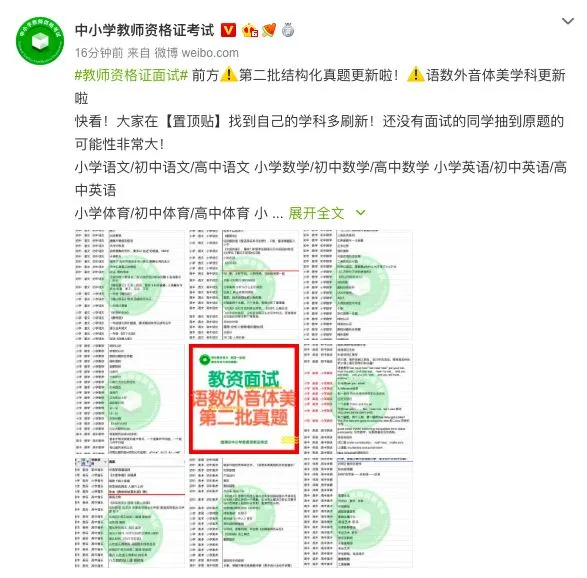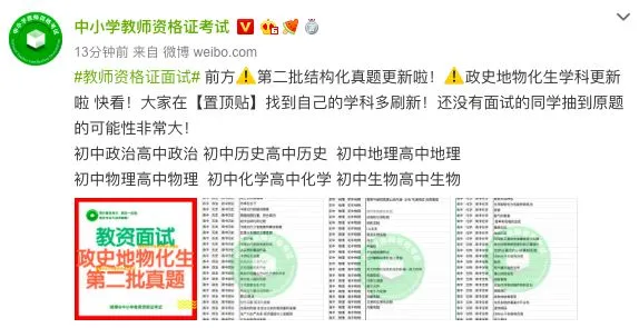 由于微信发布的数目限制,实时@中小学教师资格证考试官方微博 所有汇总真题都在置顶帖中。