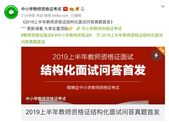 跳转微博@中小学教师资格证考试 当日置顶微博