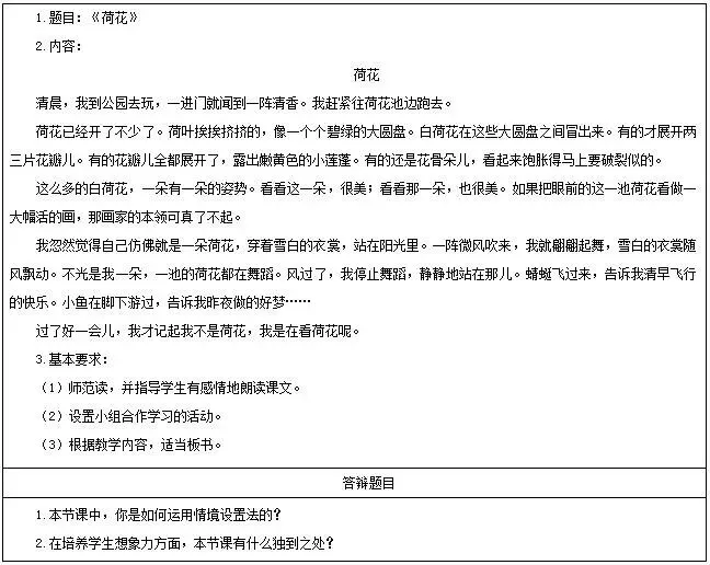 C.课文题目是“荷花”,为什么这里要写荷叶呢?(为了更好地突出荷花的美。)