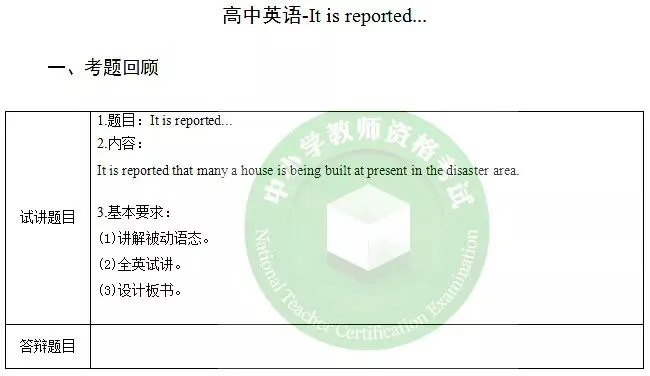 Then show the sentence “It is reported that many a house is being built at present in the disaster area.” and ask them to add up the doers in this sentence.