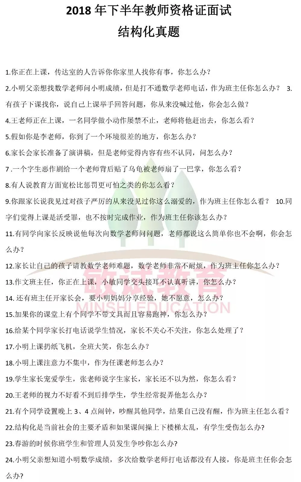 快! 面试真题已出! 2019上半年教师资格证面试真题反馈!