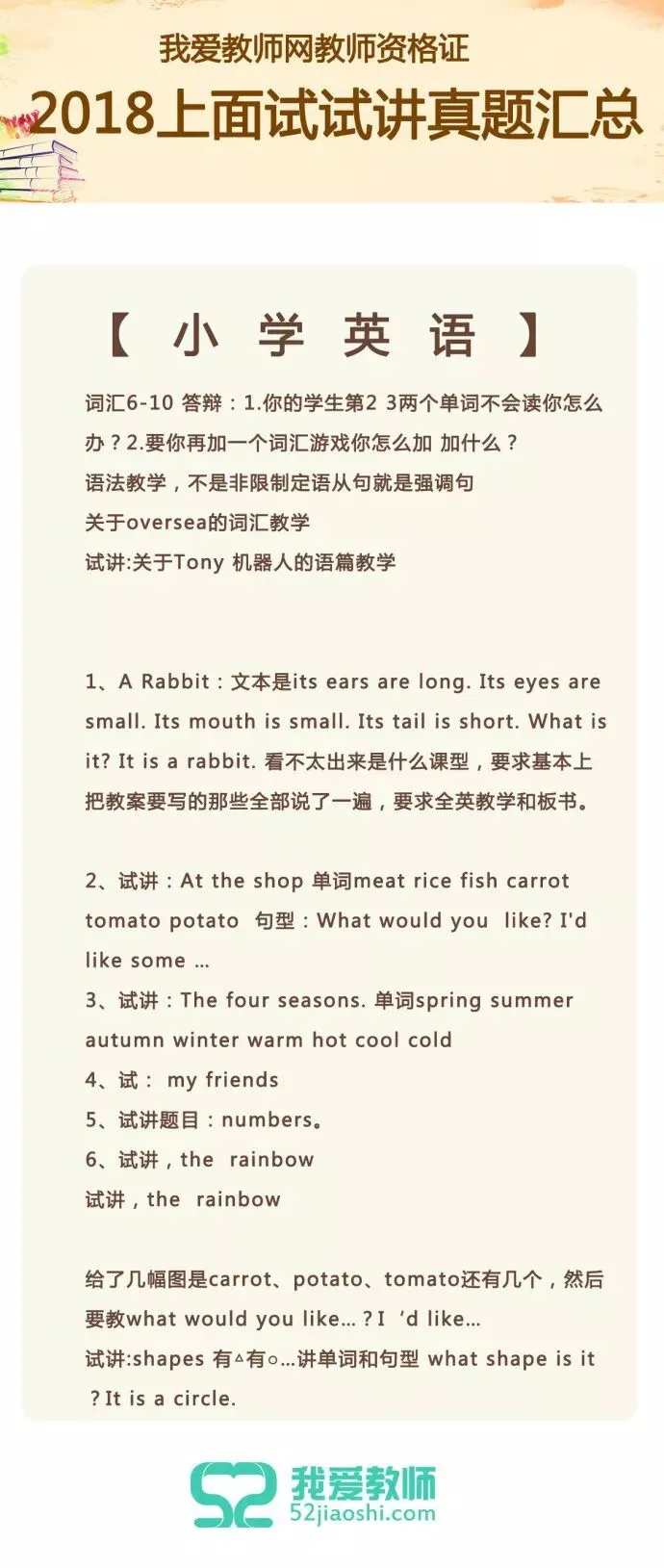 考完试别忘记攒人品!关注“我爱教师网”的官方微博,在当天的置顶微博中留下你的面试考题哦~52老师会及时出答案的!
