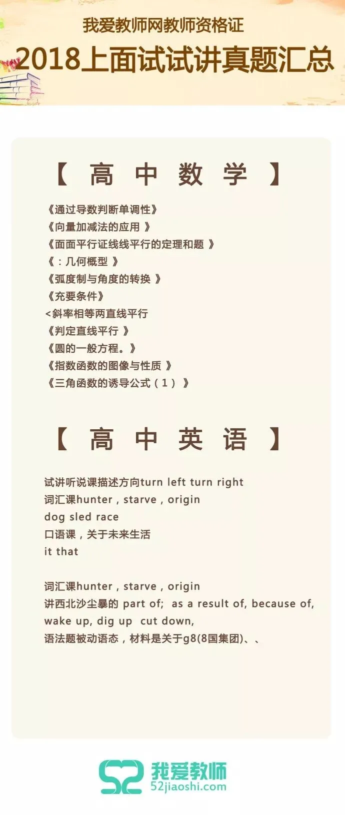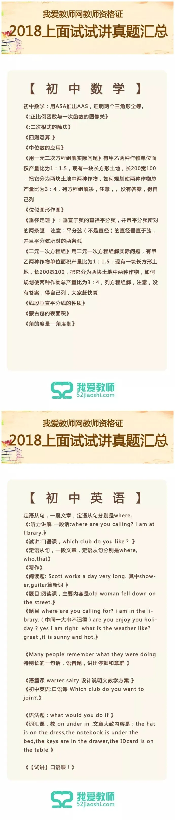 今天小编给大家整理了2018上半年的试讲内容及结构化真题+解析,这次面试非常有可能会抽到重复的题目,所以赶紧转发,能不能抽到这些题,就看人品了