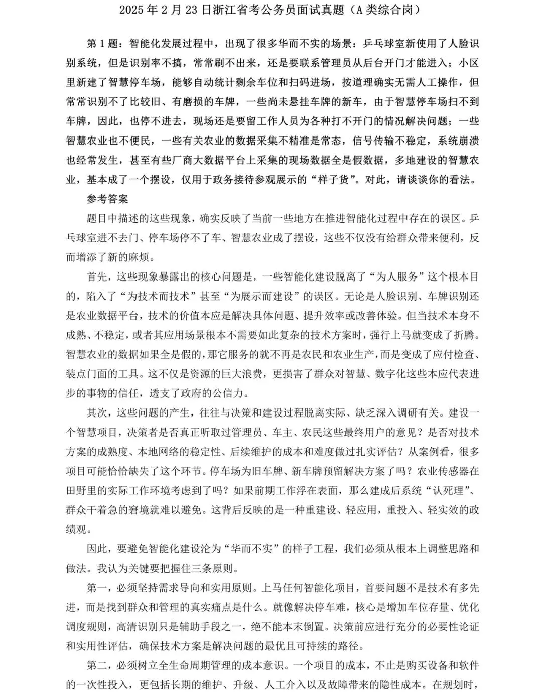 >14-25年浙江省考公务员面试真题及答案逐字稿