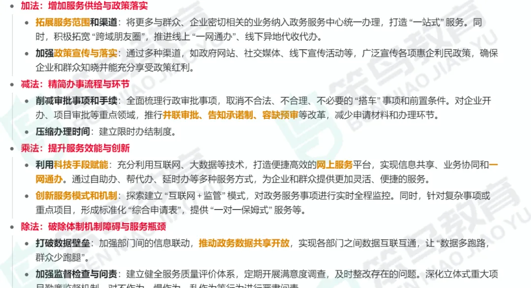 我把平时练习遇见的组员发表新颖的、高大上的时政词汇、题目材料或答案中有普适性的点全都记录,分不同的主题进行整理,这样每一次答题就有一次积累,每一次遇见类似的主题题目就有话可说。比如经典的加减乘除法: