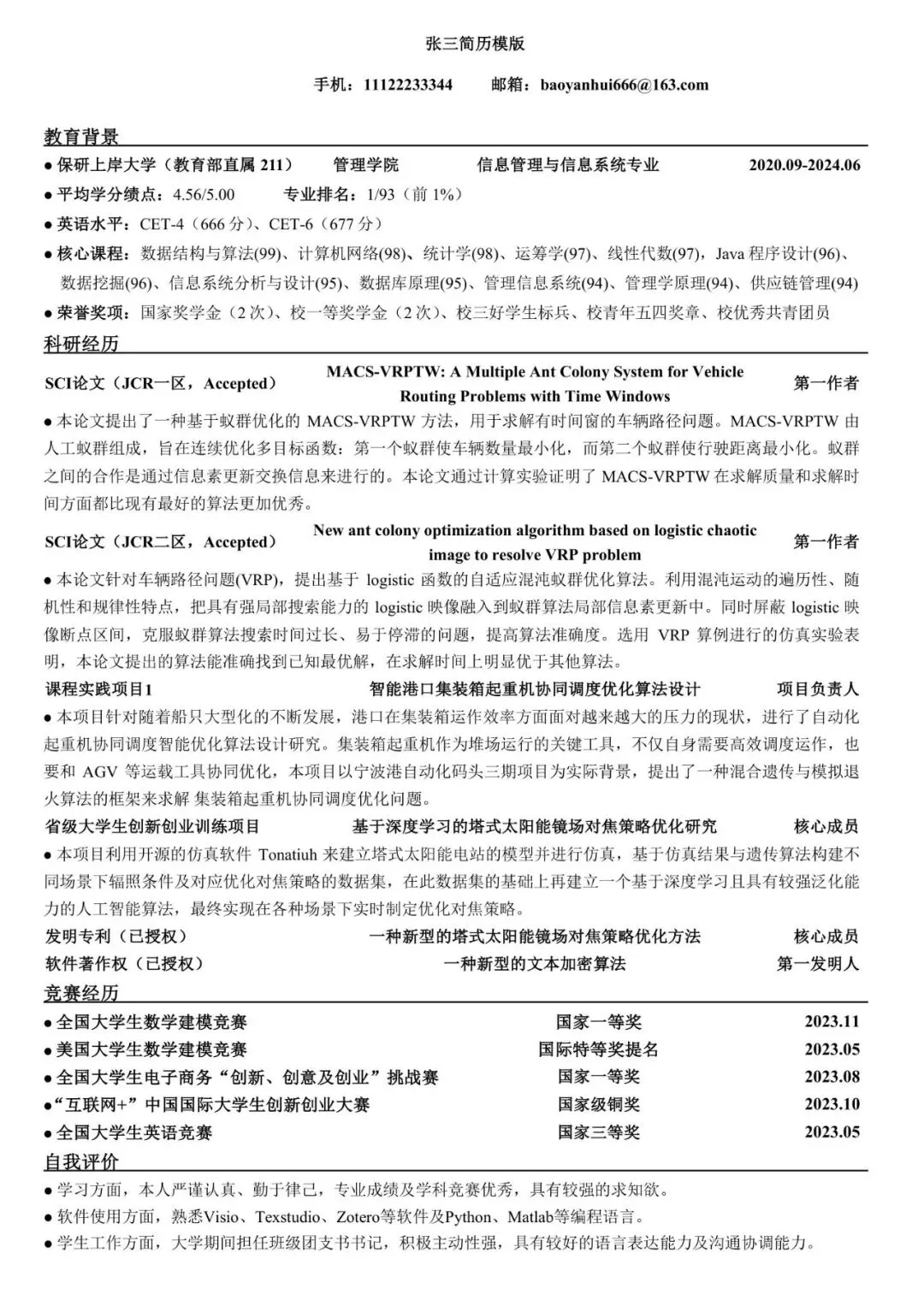 被导师夸爆的保研个人简历模板来啦!需要的同学可自取
