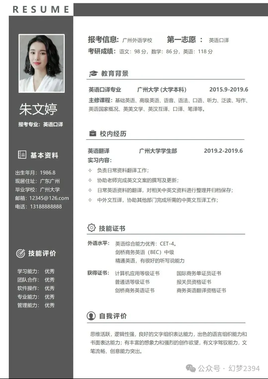 被导师夸爆的保研个人简历模板来啦!需要的同学可自取