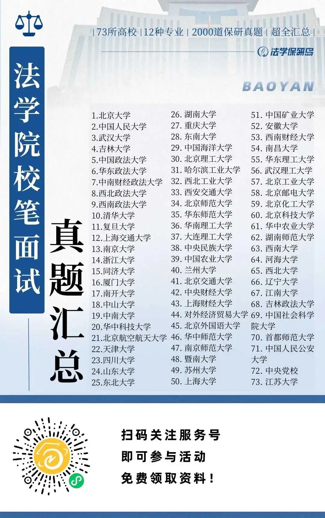 73所高校、2000道法学保研真题,超全汇总,考核无忧!