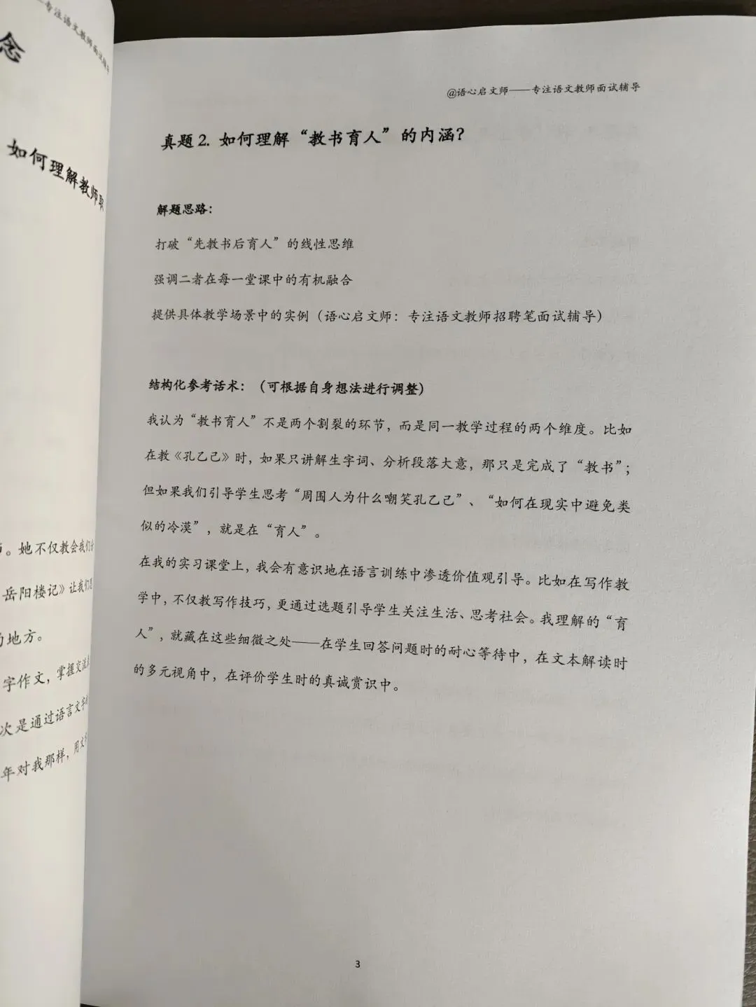 2. 区分度的关键指标:相比通用结构化,学科结构化更能拉开差距——能结合语文新课程标准,或针对学科教育的理解,会远胜于仅回答通用教育理论的考生,是从“合格”到“优秀”的分水岭。