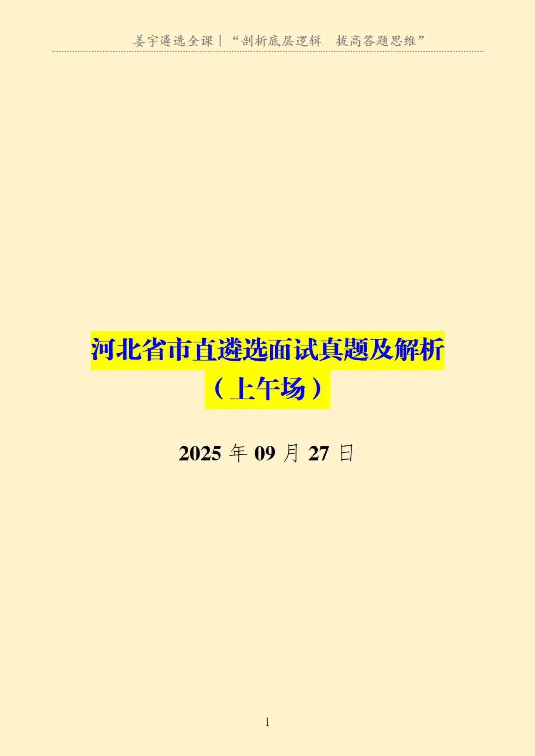 >2025年09月27日|河北省市直遴选面试真题及解析(上午场)