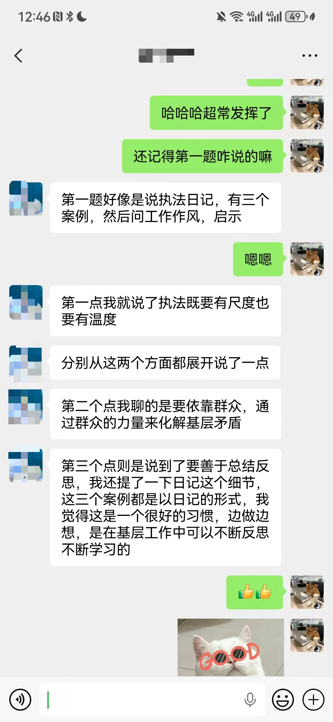 最后,我想说,基层执法工作是一门充满智慧的“街头艺术”和“群众学问”。它需要温度与尺度兼具的平衡智慧,需要深入群众、借力打力的工作方法,更需要一份在实干中不断反思、持续精进的自觉。我希望自己如果能走上这个岗位,也能成为这样一名有思考、有温度、有办法的基层工作者。