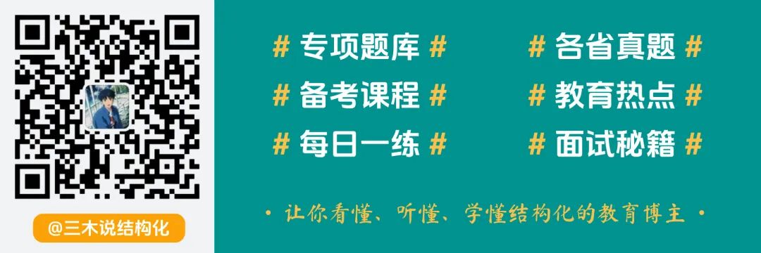 ❹ 普通结构化的高频题型为职业认知类、综合分析类、人际关系类;学科结构化与试讲内容、新课改等有关。