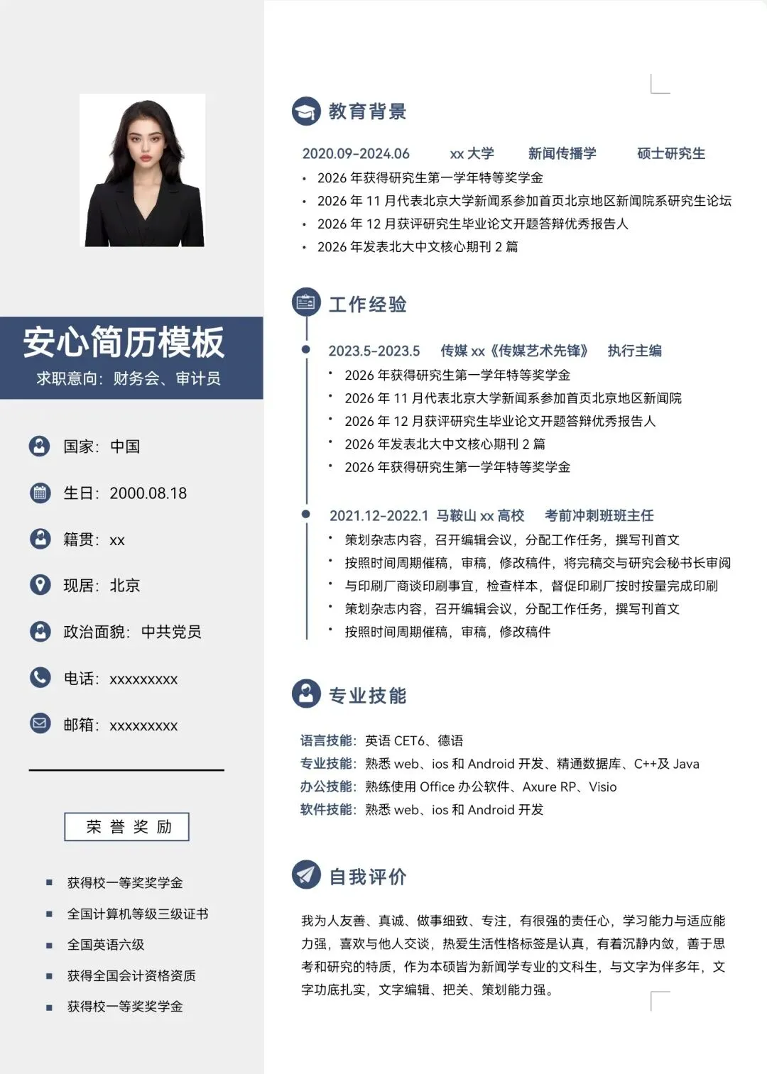 电话:xxx-xxxx-xxxx 邮箱:zhxxxxx@qq.com