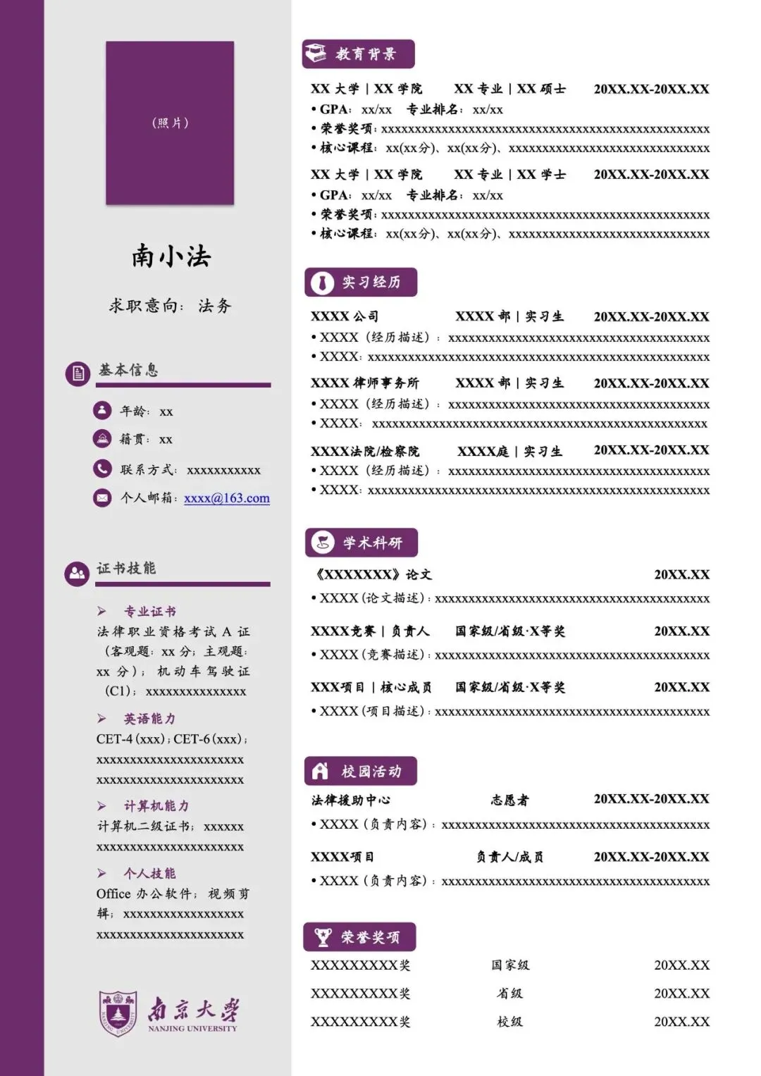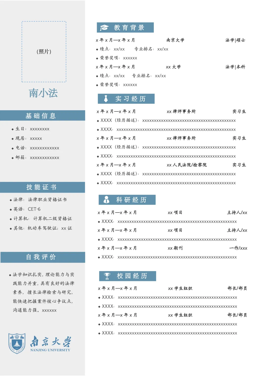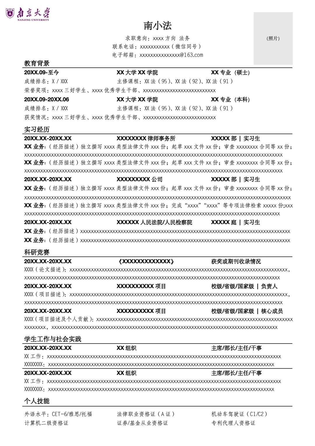 简历主体部分主要包括教育背景、实习经历、科研/校园经历三大模块,各模块内部时间需按倒序排列,最新经历置于最前。其中,教育背景前置能突出学历优势,尤其适合初级律师或实习生申请,可补充求职相关核心课程、高分成绩及具体荣誉;实习经历为重中之重,用“动宾结构”量化描述,如“完成XX份法律检索报告”“协助处理XX起非诉项目”等,确保真实不夸大;科研经历需注明角色及成果,校园经历优先挑选岗位相关内容。