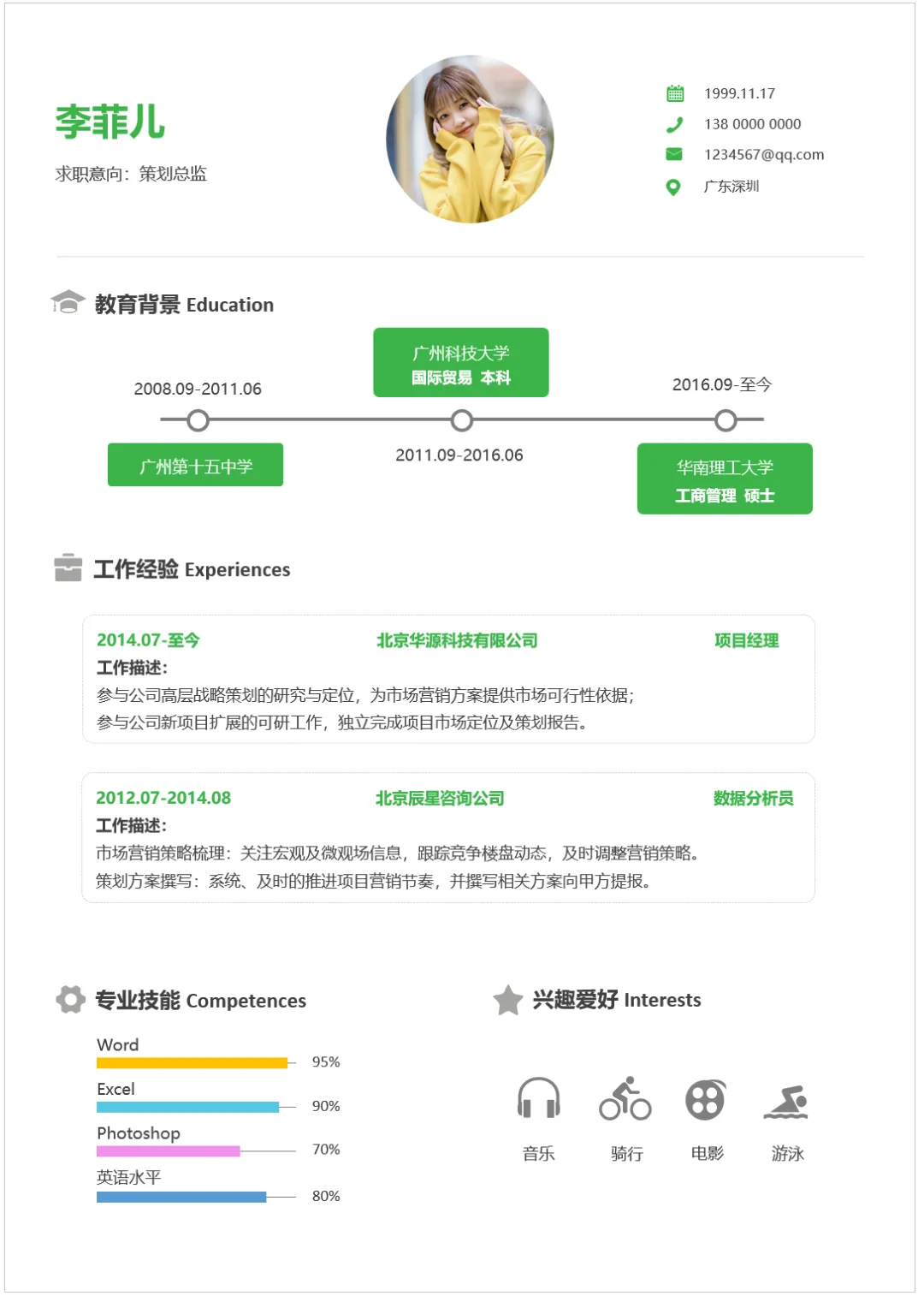 市场策划经理求职简历模板,WORD文档电子版,可免费下载打印