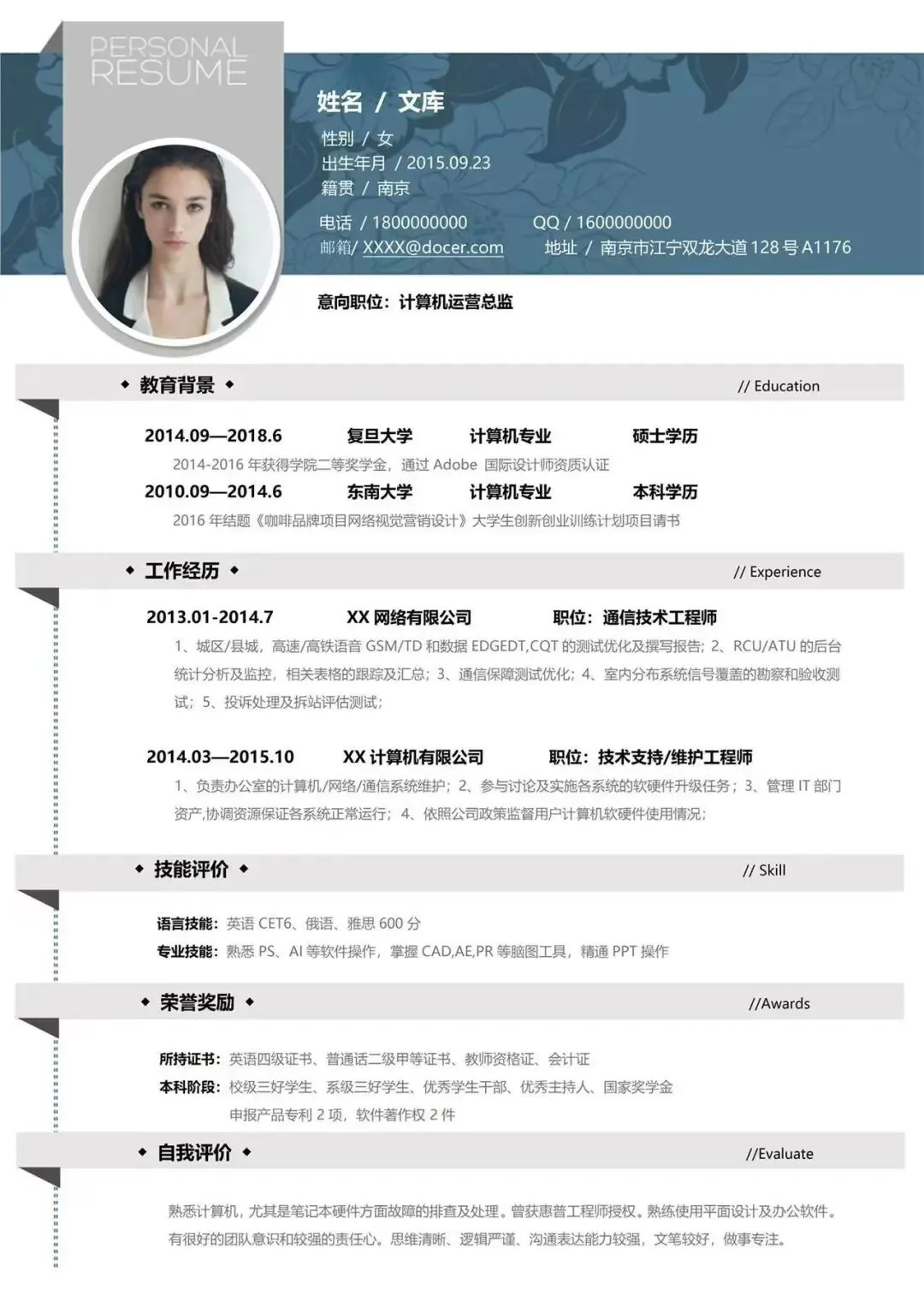 以下为部分简历模板展示区