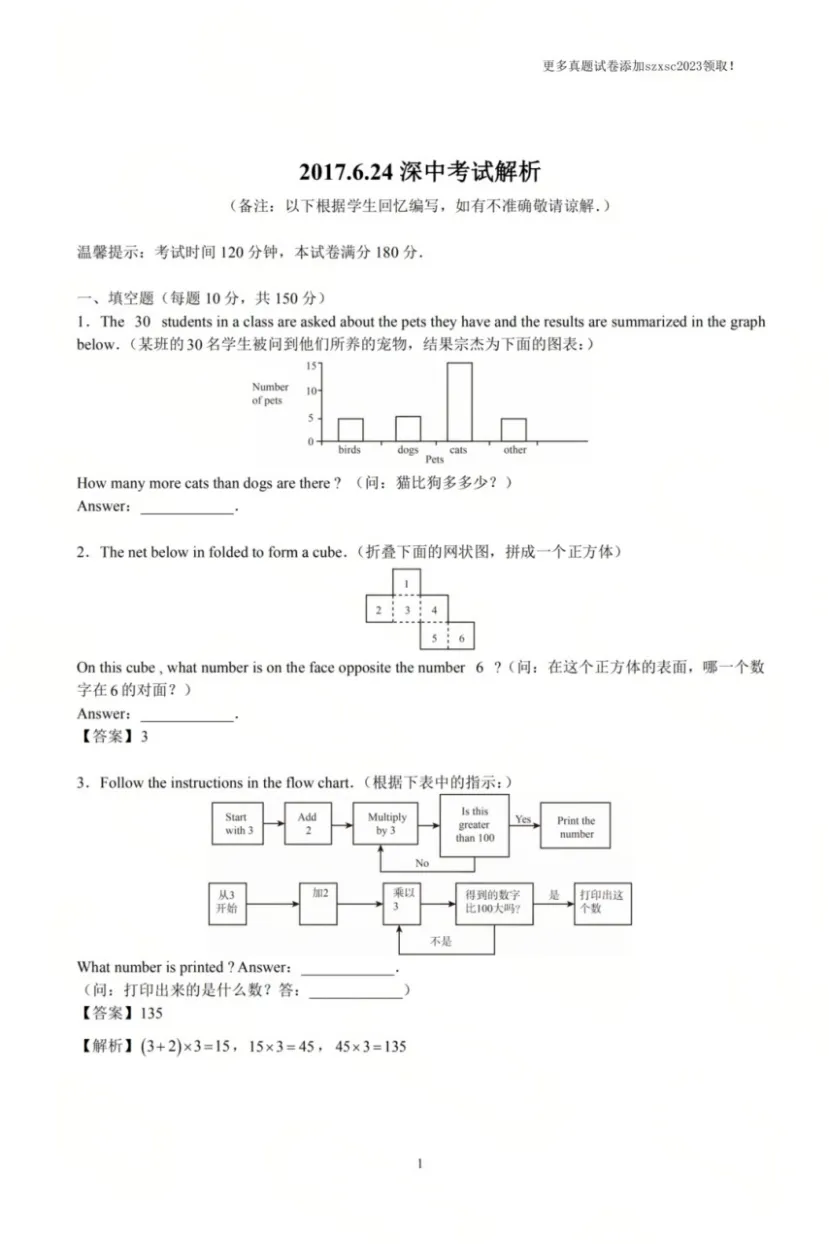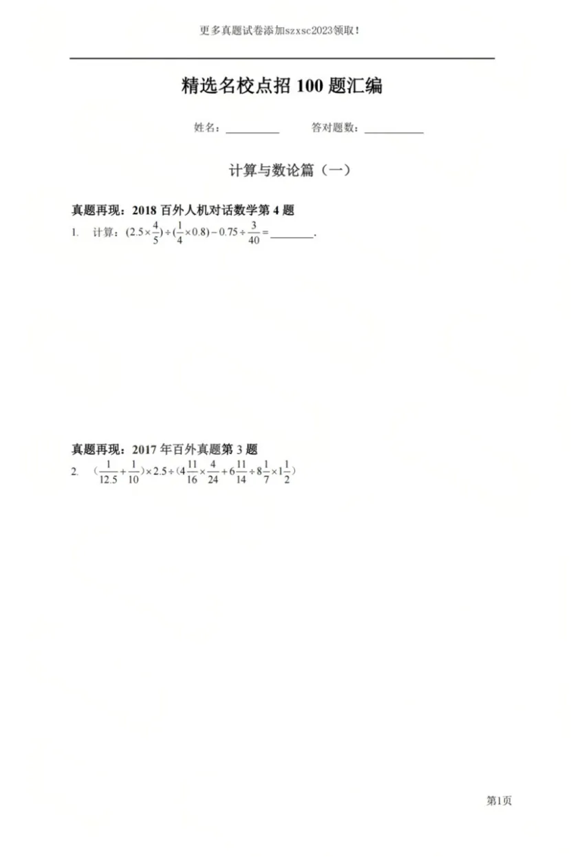 深圳各大名校点招真题集