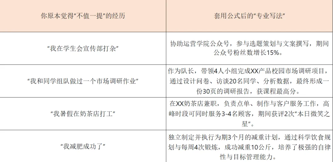 记住这个万能公式,把你的任何经历都变得“专业”起来: