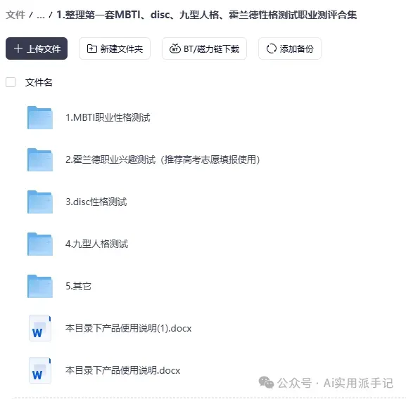 - 全套性格职业测评教程 + 自测工具包含 MBTI 性格测试、九型人格分析、DISC 行为风格测评、霍兰德职业生涯规划测评的完整教程与自测问卷。帮你精准定位性格优势,找到适配的职业方向,写简历时再也不用 “瞎吹牛”!