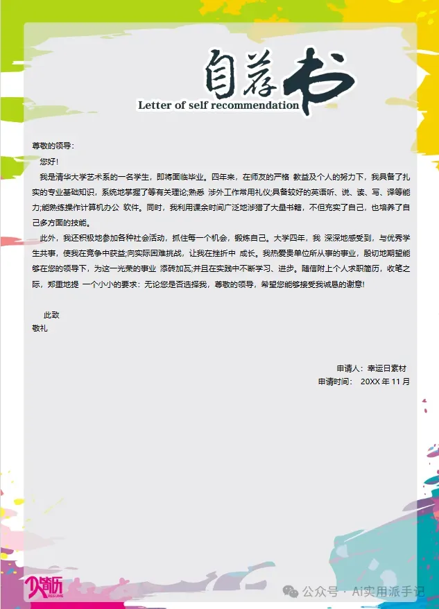 - 自荐信万能模板分行业撰写的自荐信模板,涵盖应届生、职场转型人群等不同身份。模板自带逻辑框架,只需填充个人经历,就能写出一封打动 HR 的自荐信。