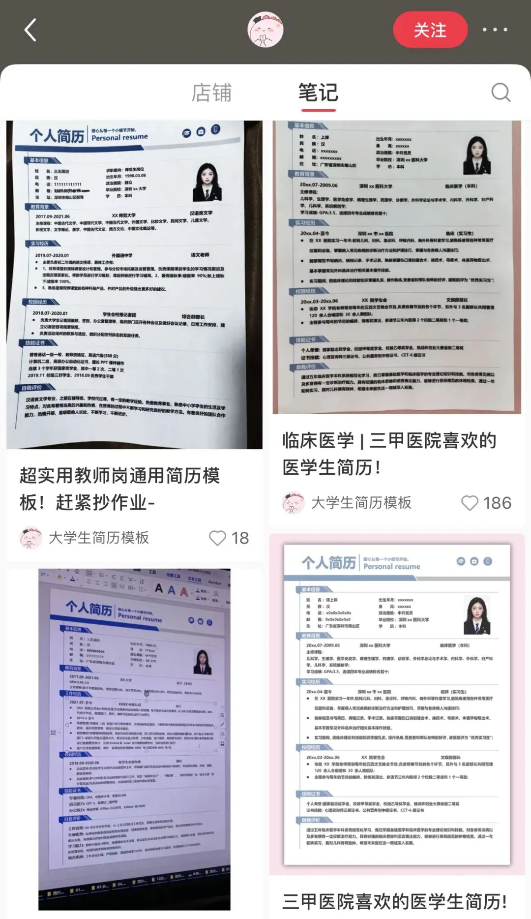 今天给大家拆解一个特别有意思的账号案例,做的是大学生简历模板