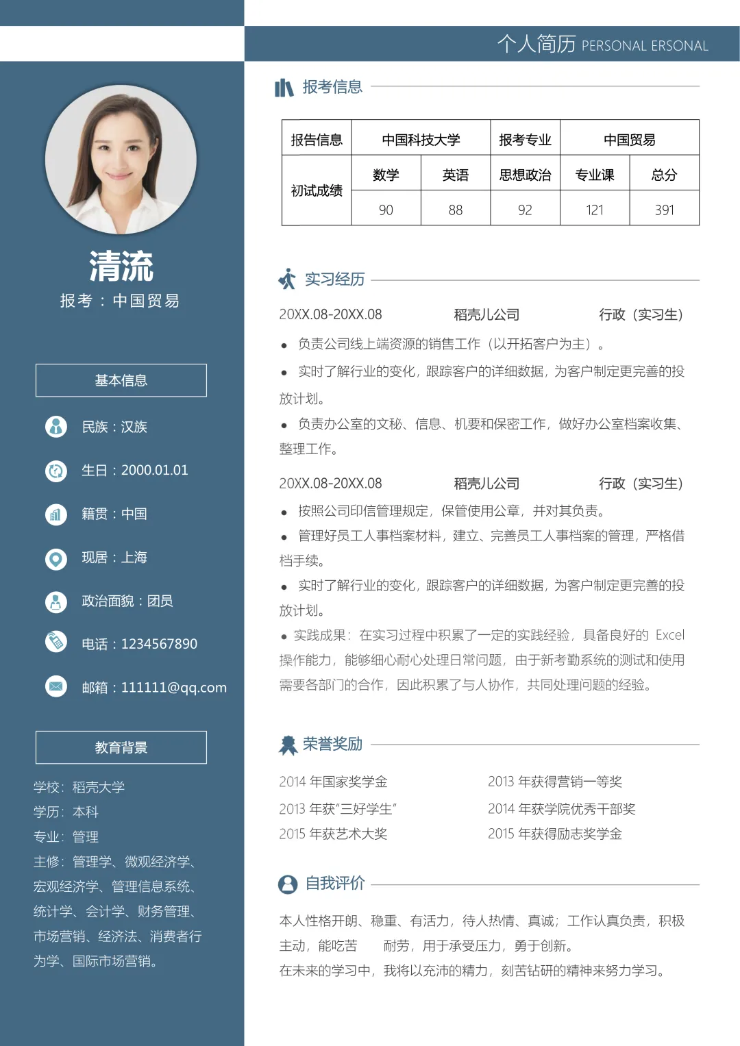 >考研复试简历模版