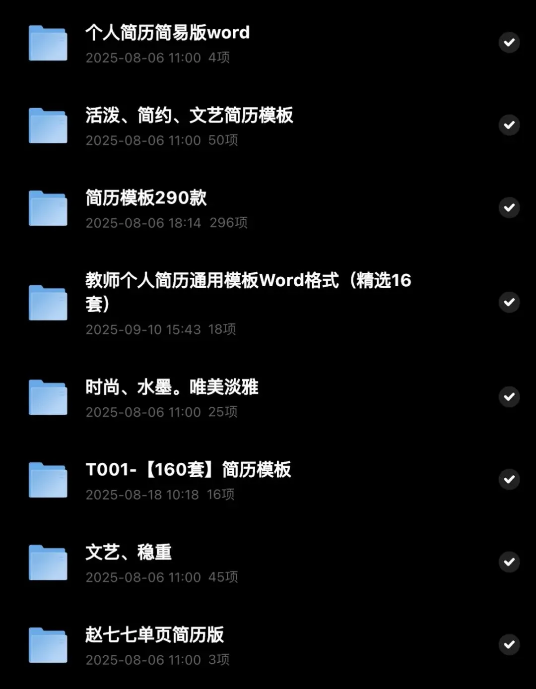 所以我花时间把散落在各处的Word 简历模板整理了一次,做成了一个可以直接保存的合集: