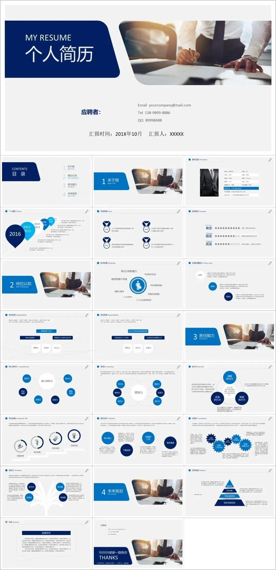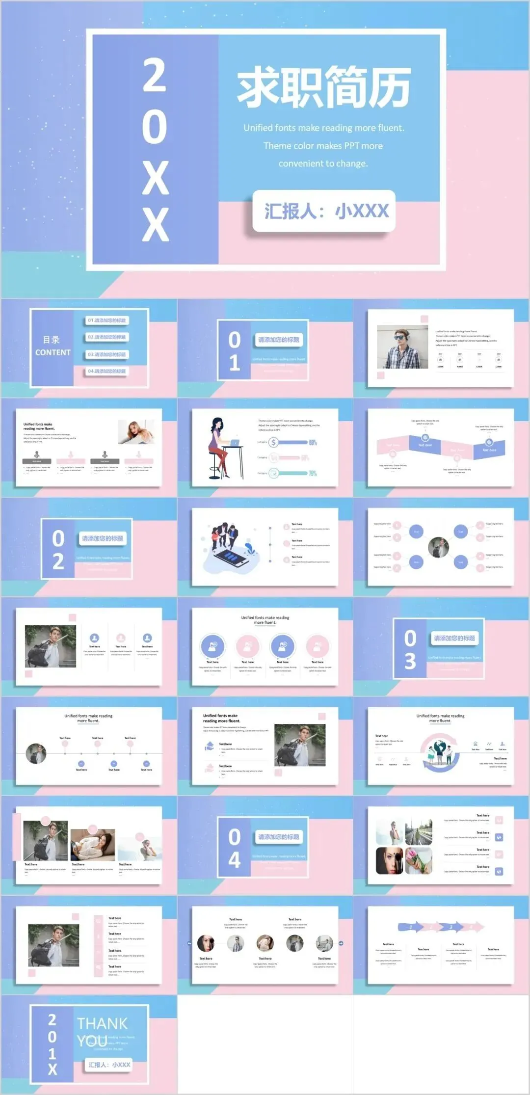 这些简历模板都是免费分享的载后,你可以根据自己的情况,修改文字、图片、颜色等,轻松制作出一份专属于你的个人简历PPT。