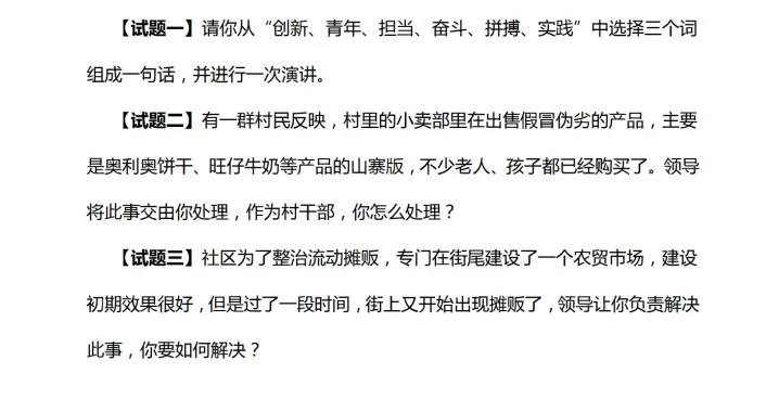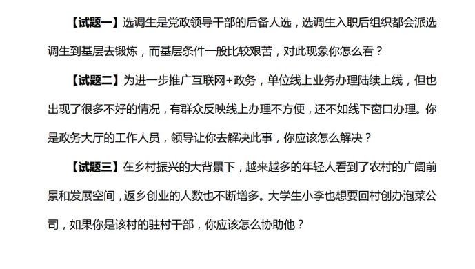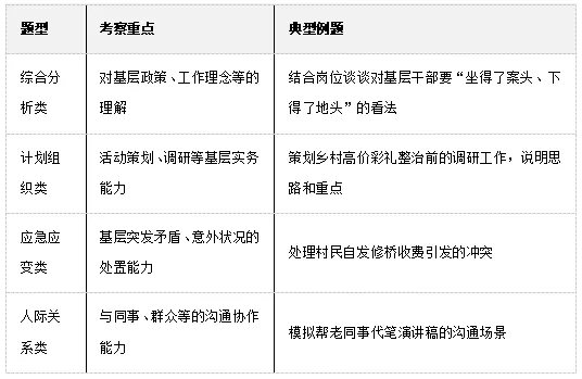 核心题型及特点面试题目紧密围绕基层工作场景,聚焦选调生岗位需求,主要涵盖四大常规题型,且题干多贴合乡村治理、群众服务等实际工作。