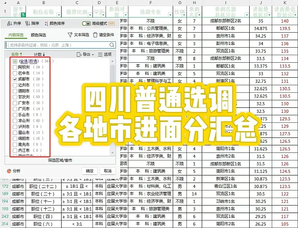 领取四川普通选调进面分汇总
