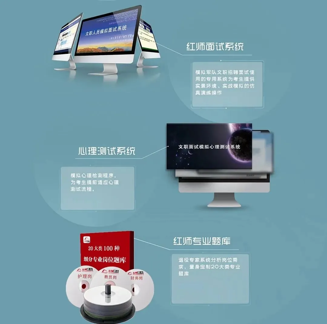 红师教育汇总形成了自己的军队文职仿真面试题库,题库中试题的难度要大致相当,筹备工作繁杂。题库主要特色有以下4点: