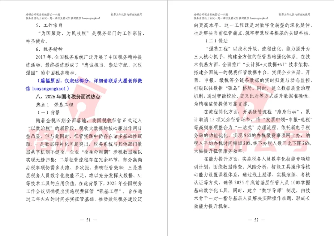 (1)体系化梳理,告别碎片化备考。本书绝非简单的资料堆砌,而是从税务面试大纲与实战规律出发,科学整合税收政策、面试题型与机关实务,为你搭建起“理论-题型-热点-实战”四位一体的清晰框架,让庞杂知识系统内化,答题思路自然贯通。