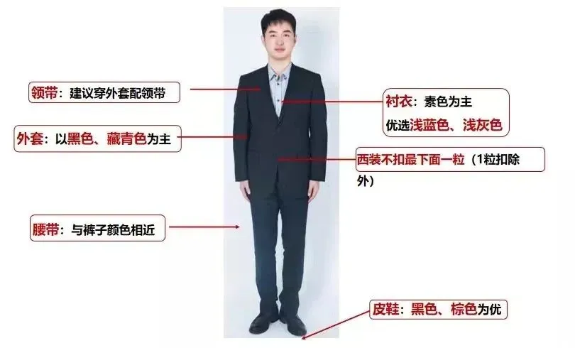 女生淡妆,头发盘起、露出额头,穿正装或其他合时宜的衣服,尽量不要美甲。男生头发要剪得干净利索些,注意面试形象。
