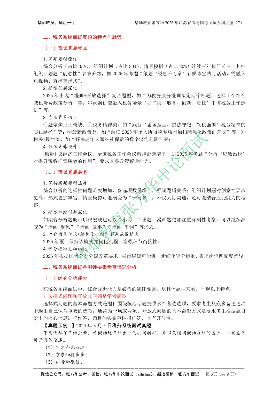张方华2026年江苏省考与国考面试系列讲座(7)