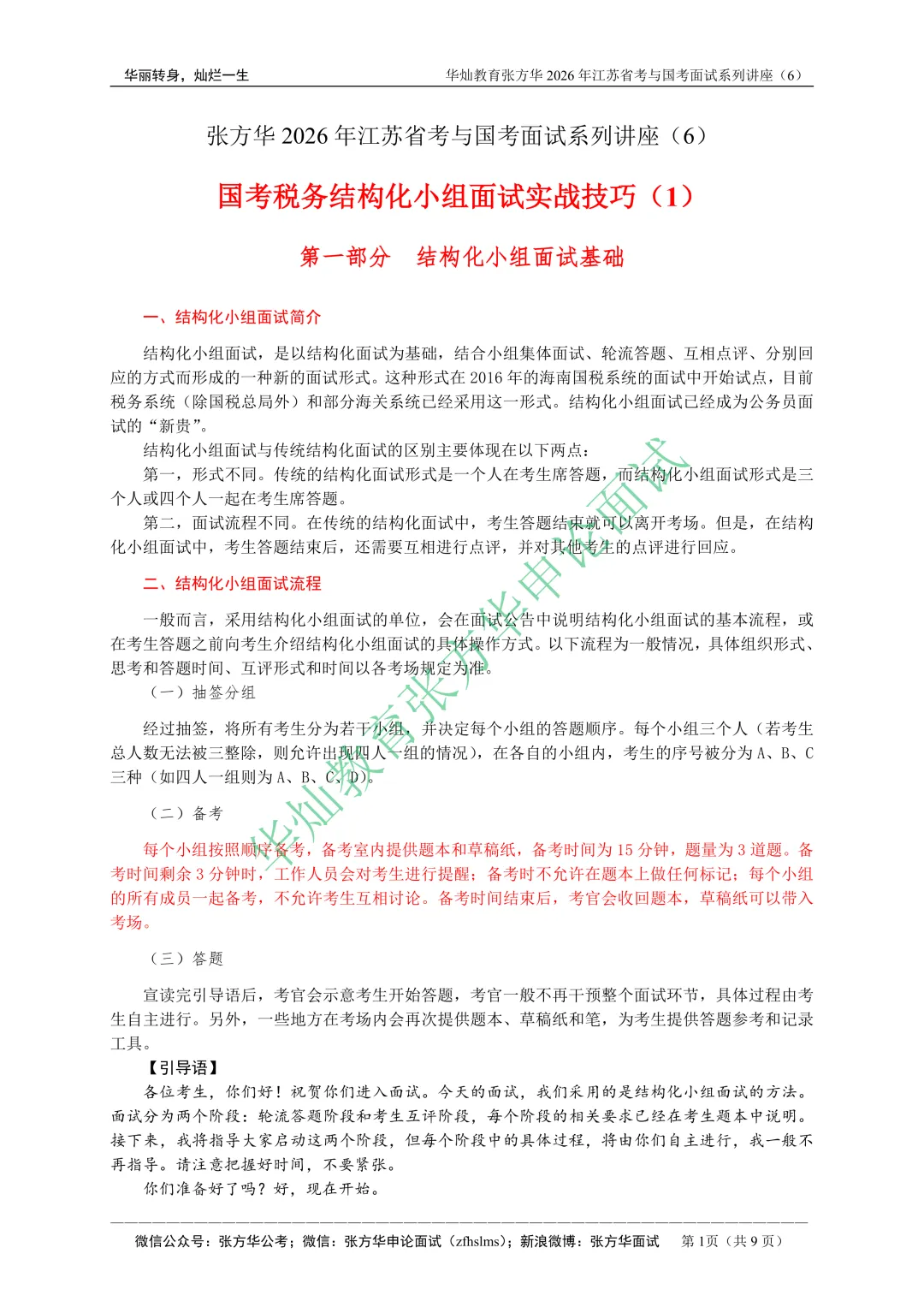张方华2026年江苏省考与国考面试系列讲座(6)